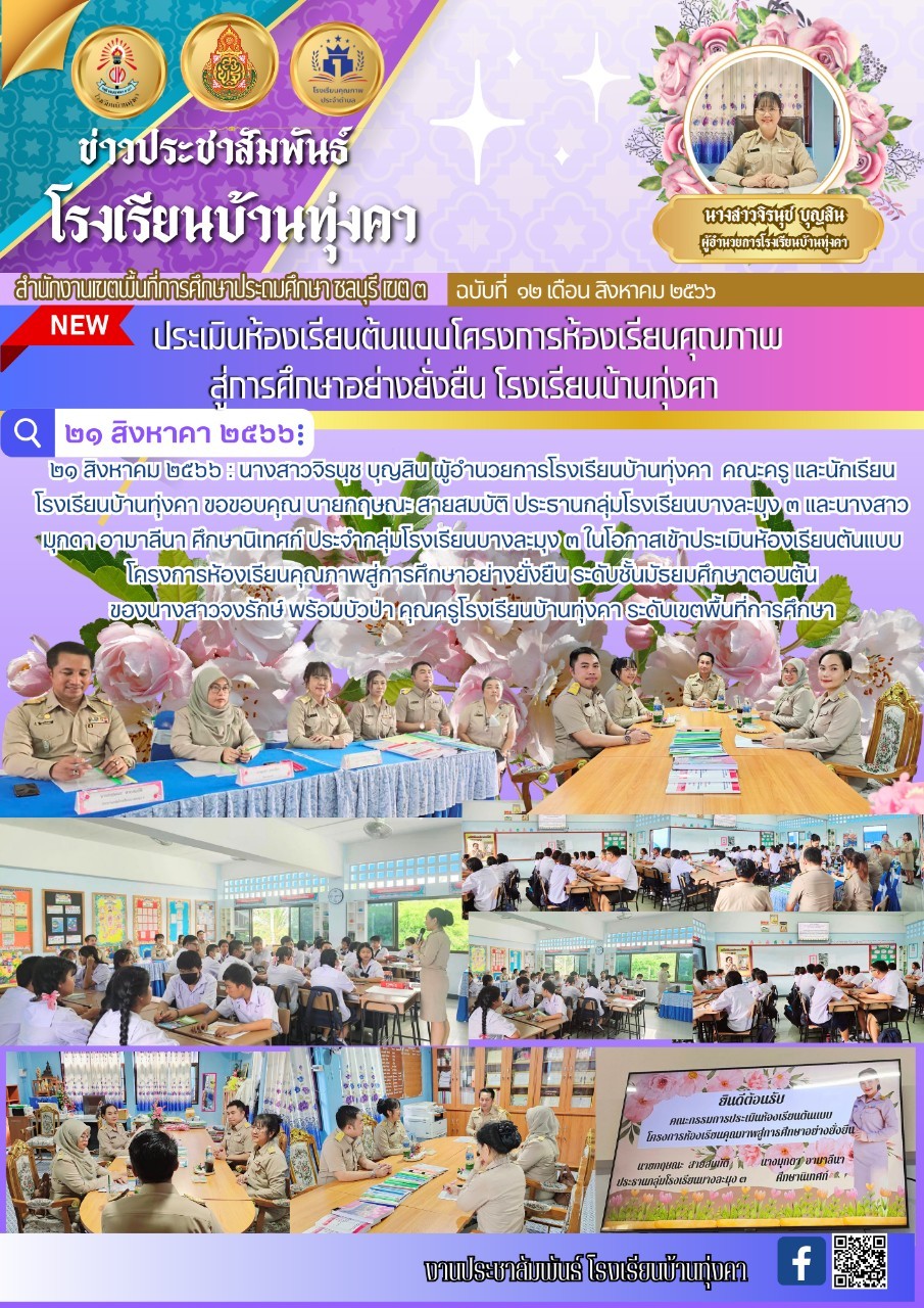 ประเมินห้องเรียนต้นแบบโครงการห้องเรียนคุณภาพสู่การศึกษาอย่างยั่งยืน โรงเรียนบ้านทุ่งคา