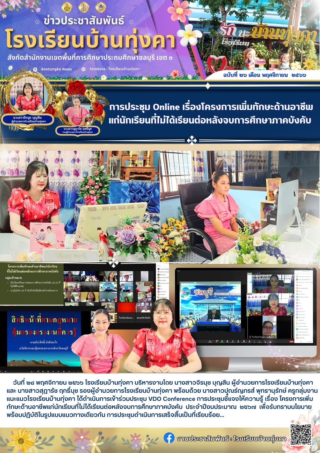 การประชุม online เรื่อง โครงการเพิ่มทักษะด้านอาชีพแก่นักเรียนที่ไม่ได้เรียนต่อหลังจบการศึกษาภาคบังคับ