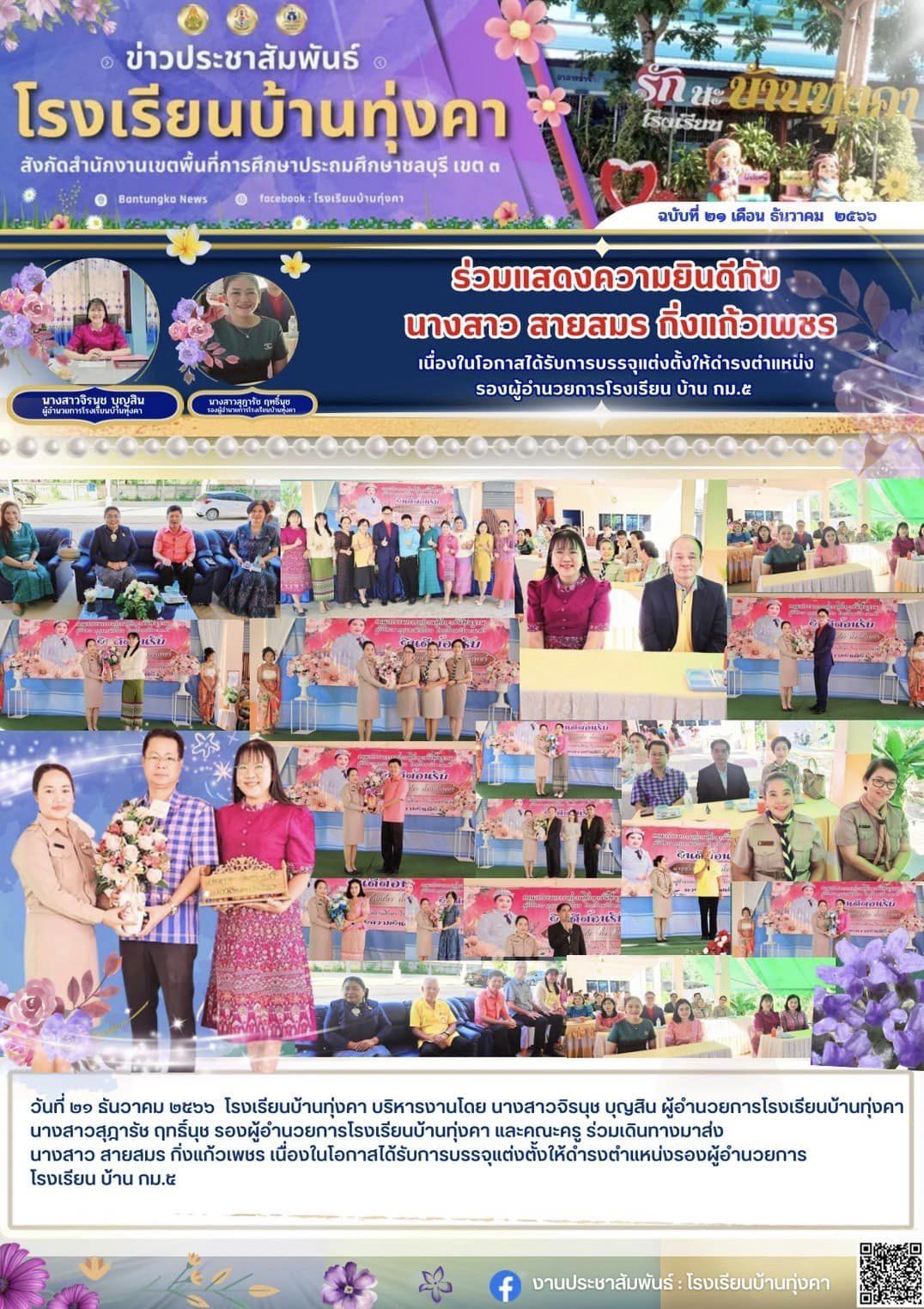 ร่วมแสดงความยินดีกับ นางสาวสายสมร กิ่งแก้วเพชร เนื่องในโอกาสได้รับการบรรจุแต่งตั้งให้ดำรงตำแหน่งผู้อำนวยการโรงเรียน บ้าน กม.5