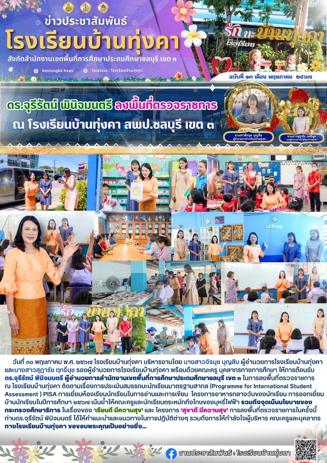 ดร.จุรีรัตน์ พินิจมนตรี ลงพื้นที่ตรวจราชการ ณ โรงเรียนบ้านทุ่งคา