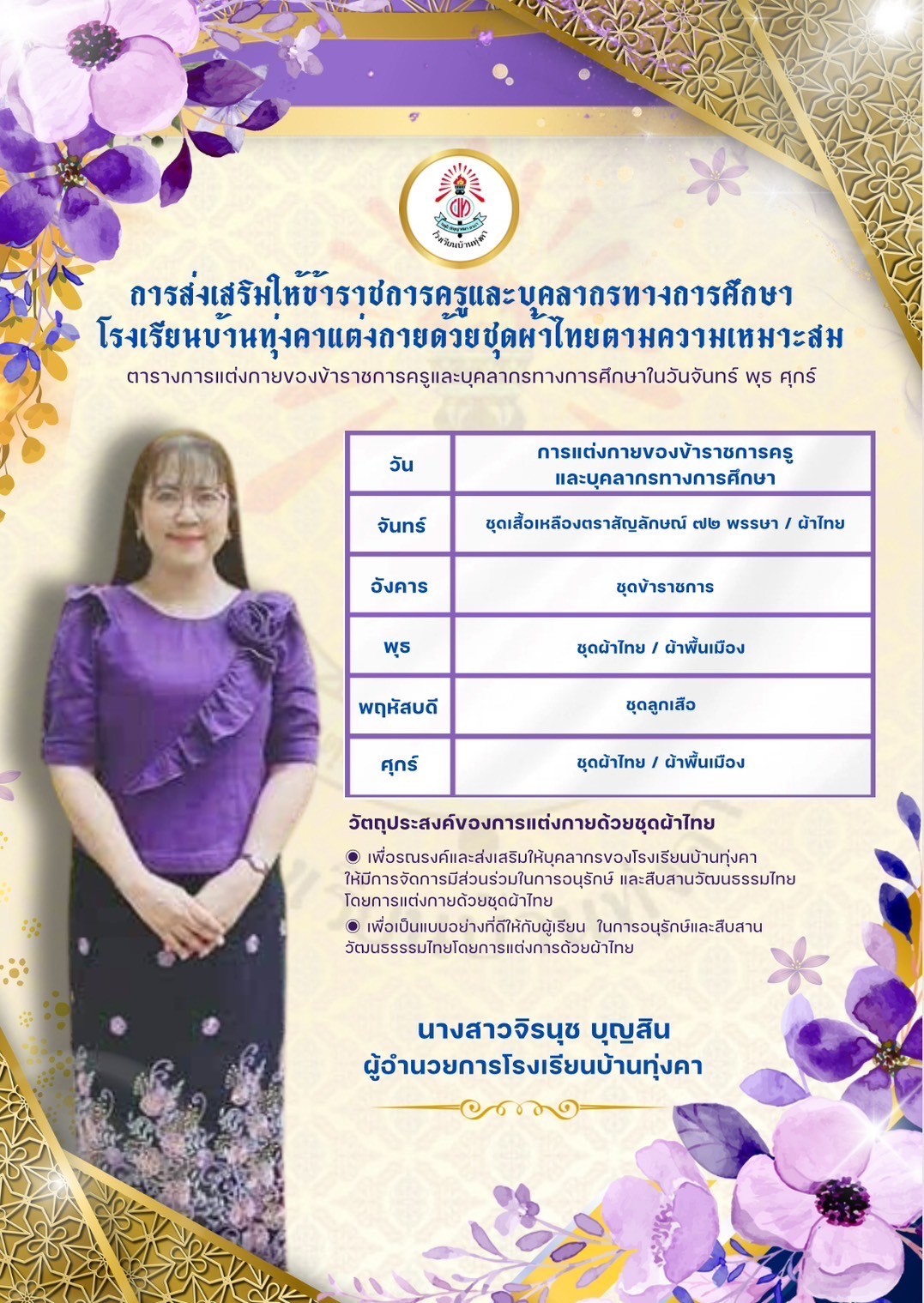 ส่งเสริมให้ข้าราชการครูและบุคลากรทางการศึกษาแต่งกายด้วยชุดผ้าไทย