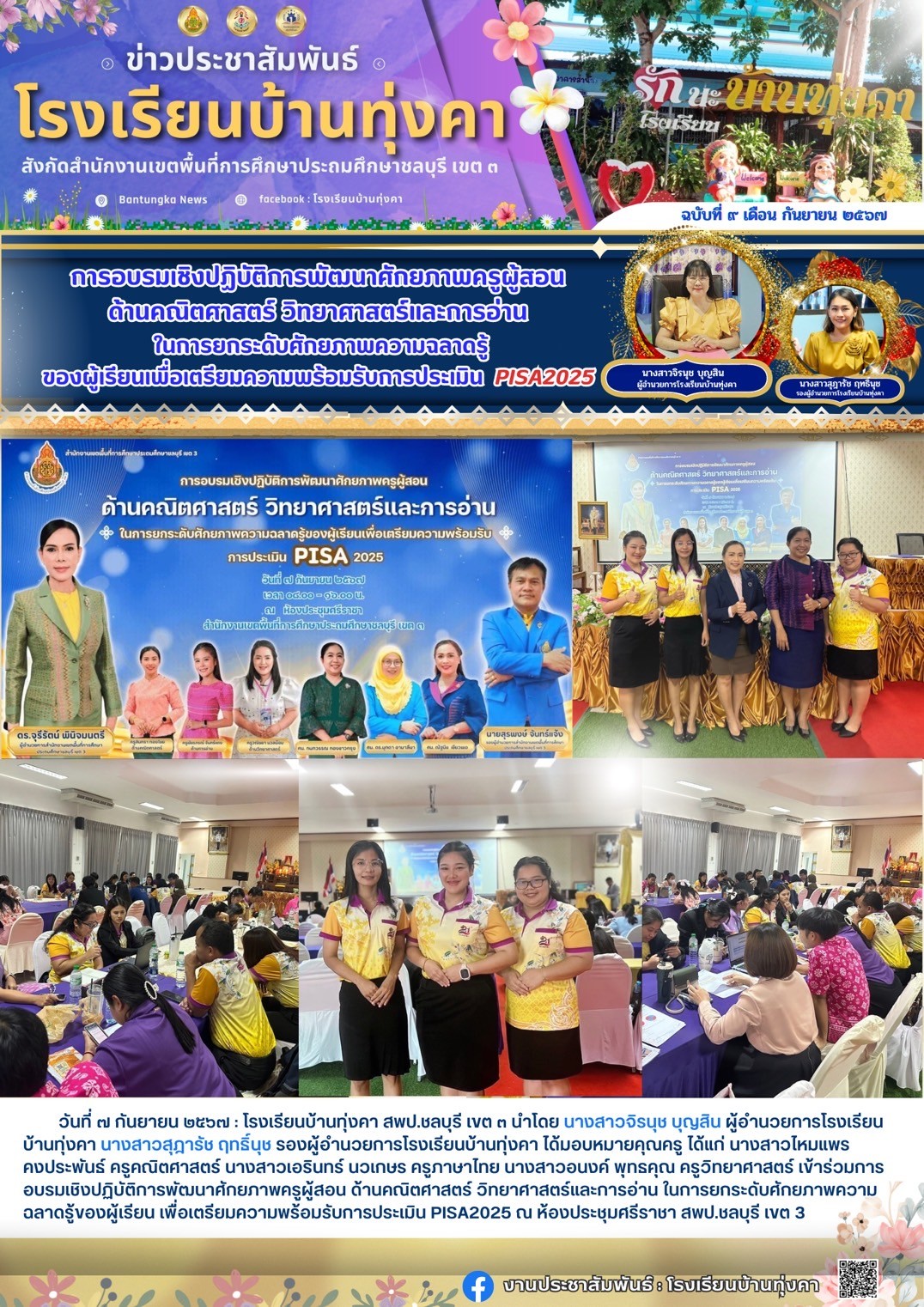 การอบรมเชิงปฏิบัติการพัฒนาศักยภาพครูผู้สอน ด้านคณิตศาสตร์ วิทยาศาสตร์ การอ่าน ในการยกระดับศักยภาพความฉลาดรู้ของผู้เรียนเพื่อเตรียมความพร้อมรับการประเมิน PISA2025