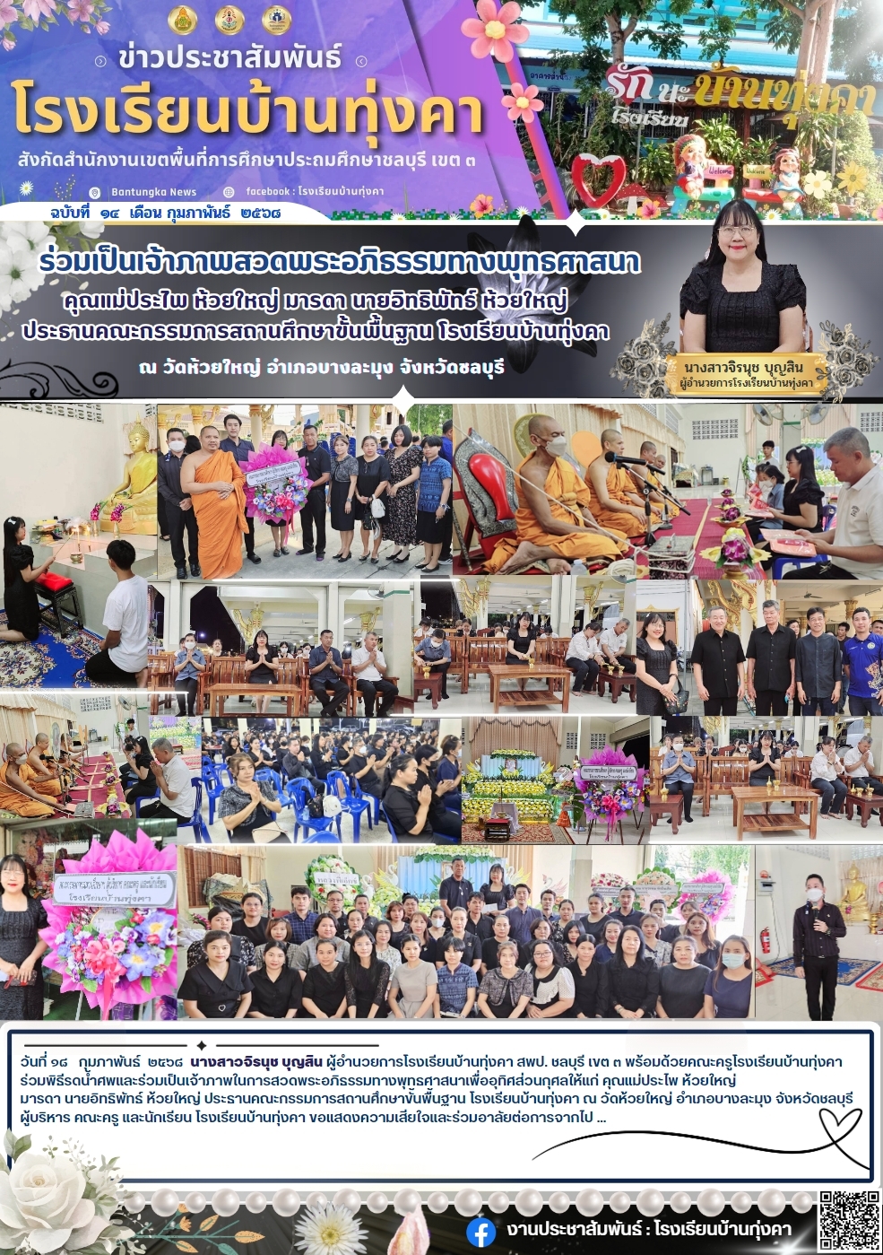 ร่วมเป็นเจ้าภาพสวดพระอภิธรรม คุณแม่ประไพ ห้วยใหญ่ มารดา นายอิทธิพัทธ์ ห้วยใหญ่ ประธานคณะกรรมการสถานศึกษาขั้นพื้นฐาน โรงเรียนบ้านทุ่งคา