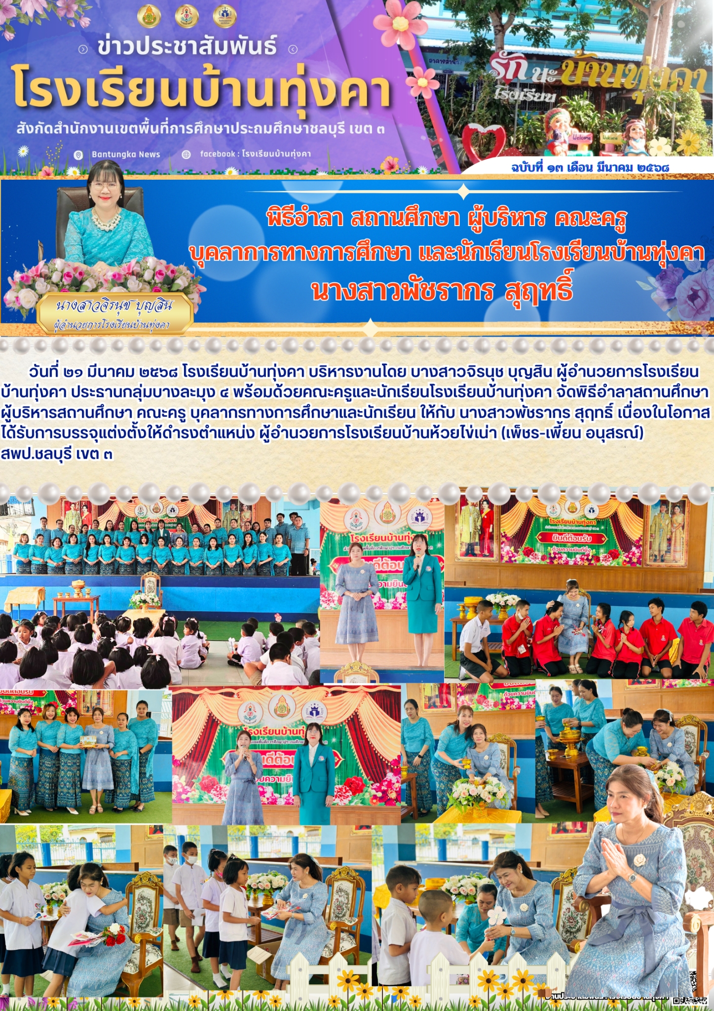 พิธีอำลาสถานศึกษา ผู้บริหาร คณะครู บุคลากรทางการศึกษา และนักเรียนโรงเรียนบ้านทุ่งคา นางสาวพัชรากร สุฤทธิ์