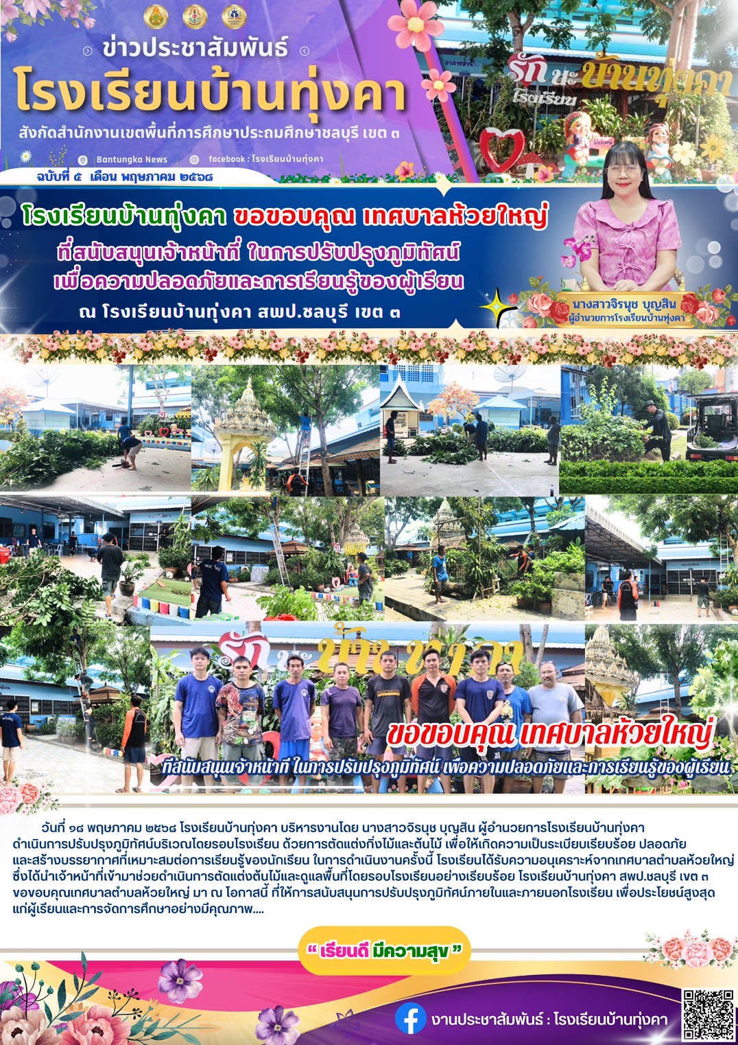 โรงเรียนบ้านทุ่งคา ขอขอบคุณ เทศบาลห้วยใหญ่ ที่สนับสนุนเจ้าหน้าที่ในการปรับปรุงภูมิทัศน์เพื่อความปลอดภัยและการเรียนรู้ของผู้เรียน