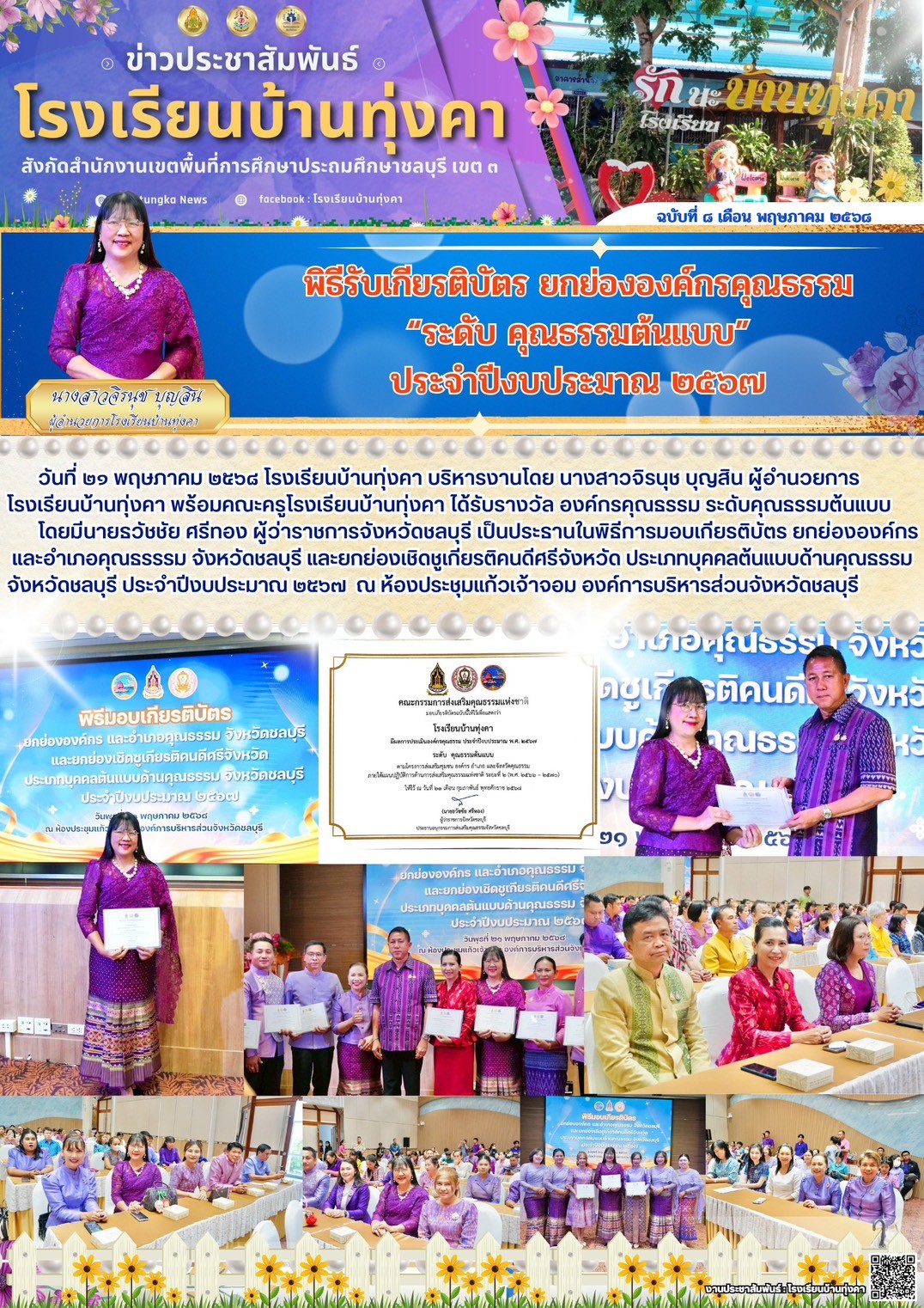 พิธีรับเกียรติบัตร ยกย่ององค์กรคุณธรรม "ระดับ คุณธรรมต้นแบบ" ประจำปีงบประมาณ 2567