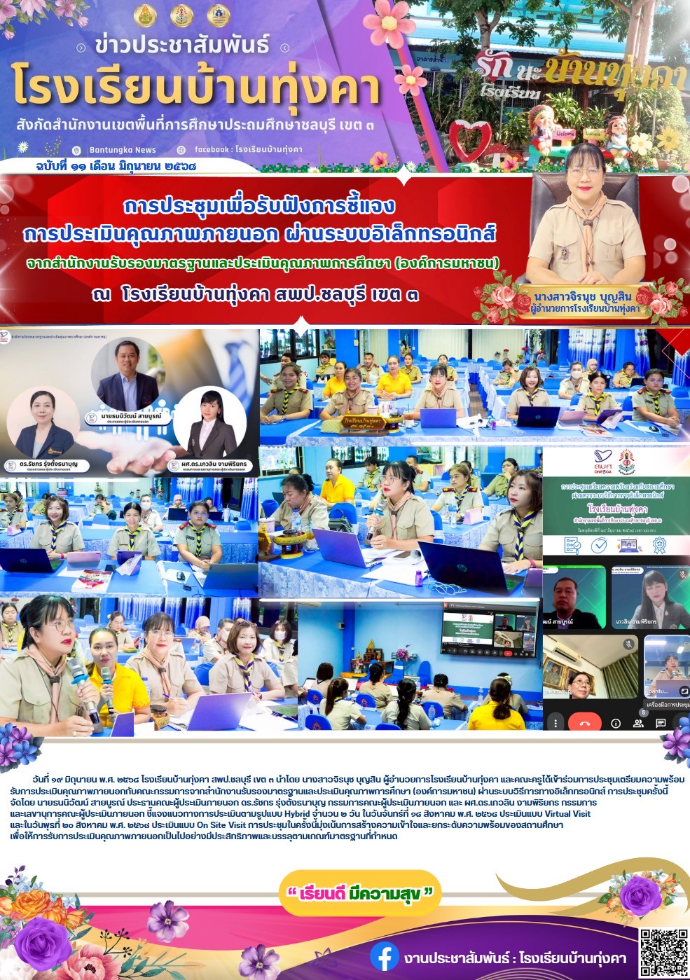 การประชุมเพื่อรับฟังการชี้แจงการประเมินคุณภาพภาย ผ่านระบบอิเล็กทรอนิกส์ จาก สมศ.