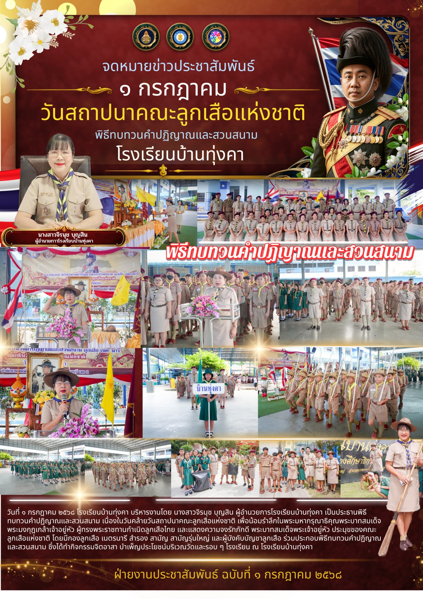พิธีทบทวนคำปฏิญาณและสวนสนาม เนื่องในวันสถาปนาคณะลูกเสือแห่งชาติ โรงเรียนบ้านทุ่งคา