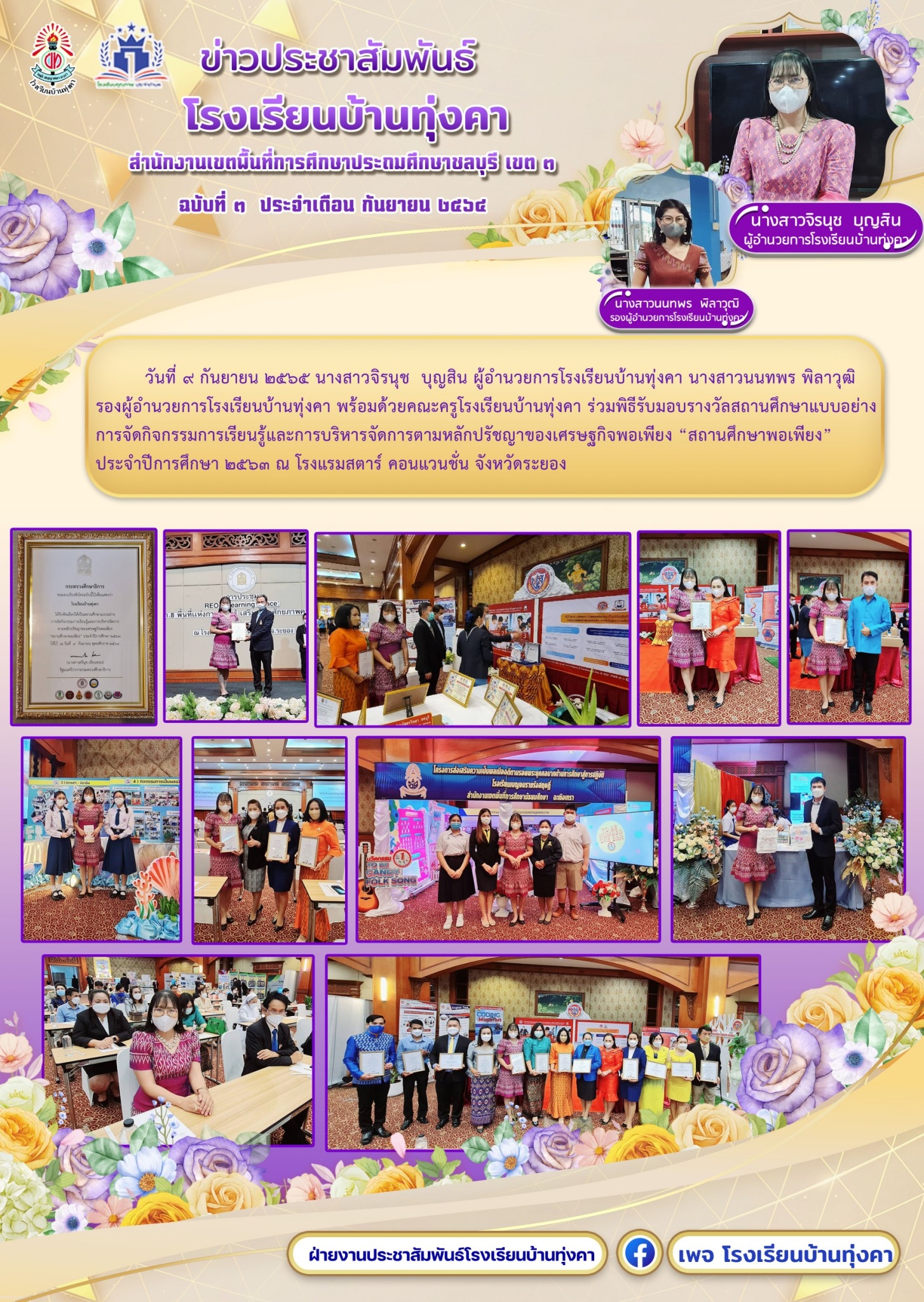 รับมอบรางวัลสถานศึกษาแบบอย่างการจัดกิจกรรมการเรียนรู้และการบริหารจัดการตามหลักปรัชญาของเศรษฐกิจพอเพียง "สถานศึกษาพอเพียง"
