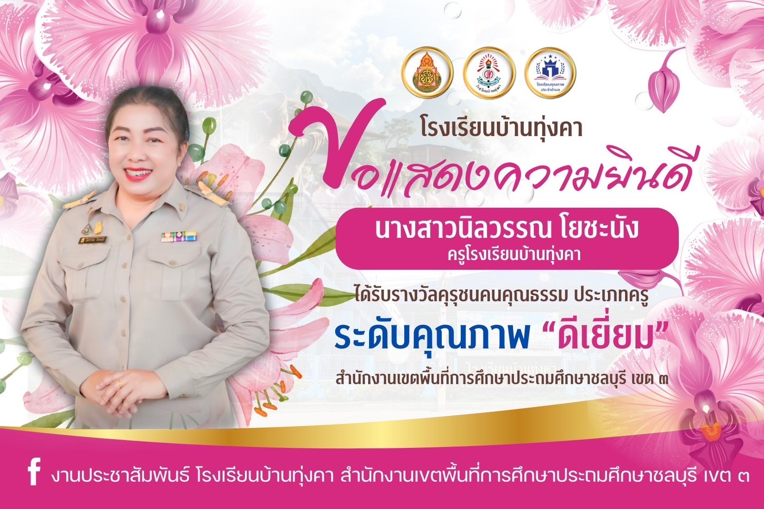 ขอแสดงความยินดีกับ นางสาวนิลวรรณ โยชะนัง ได้รับรางวัลคุรุชนคนคุณธรรม ประเภทครู ระดับคุณภาพ "ดีเยี่ยม" จากสำนักงานเขตพื้นที่การศึกษาประถมศึกษาชลบุรี เขต 3