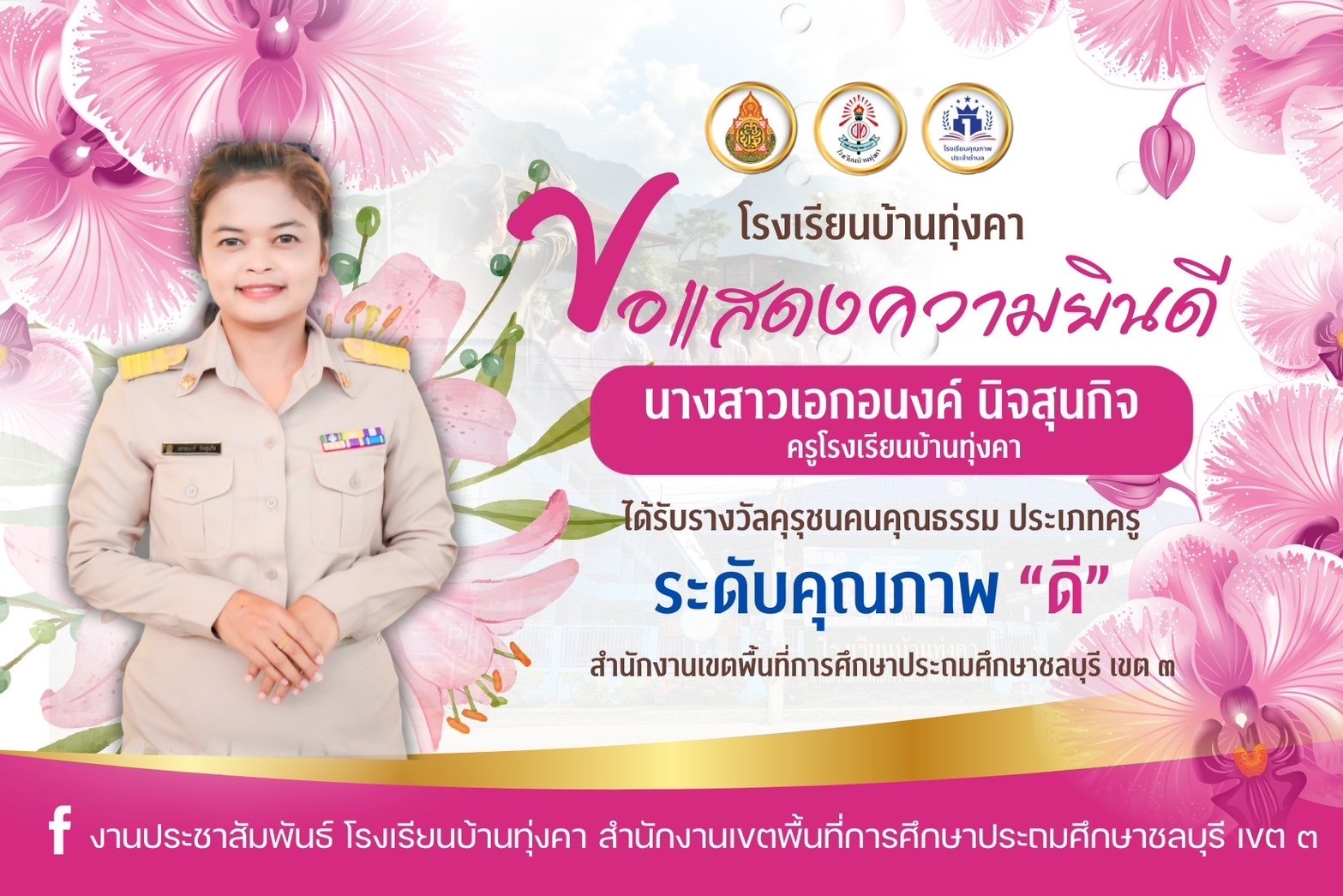 ขอแสดงความยินดีกับ นางสาวเอกอนงค์ นิจสุนกิจ ได้รับรางวัลคุรุชนคนคุณธรรม ประเภทครู ระดับคุณภาพ "ดี" จากสำนักงานเขตพื้นที่การศึกษาประถมศึกษาชลบุรี เขต 3