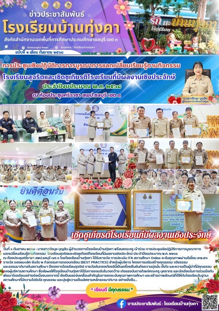 การประชุมเชิงปฏิบัติการ การบูรณาการแลกเปลี่ยนเรียนรู้ตามกิจกรรม โรงเรียนสุจริตและเชิดชูเกียรติโรงเรียนที่มีผลงานเชิงประจักษ์
