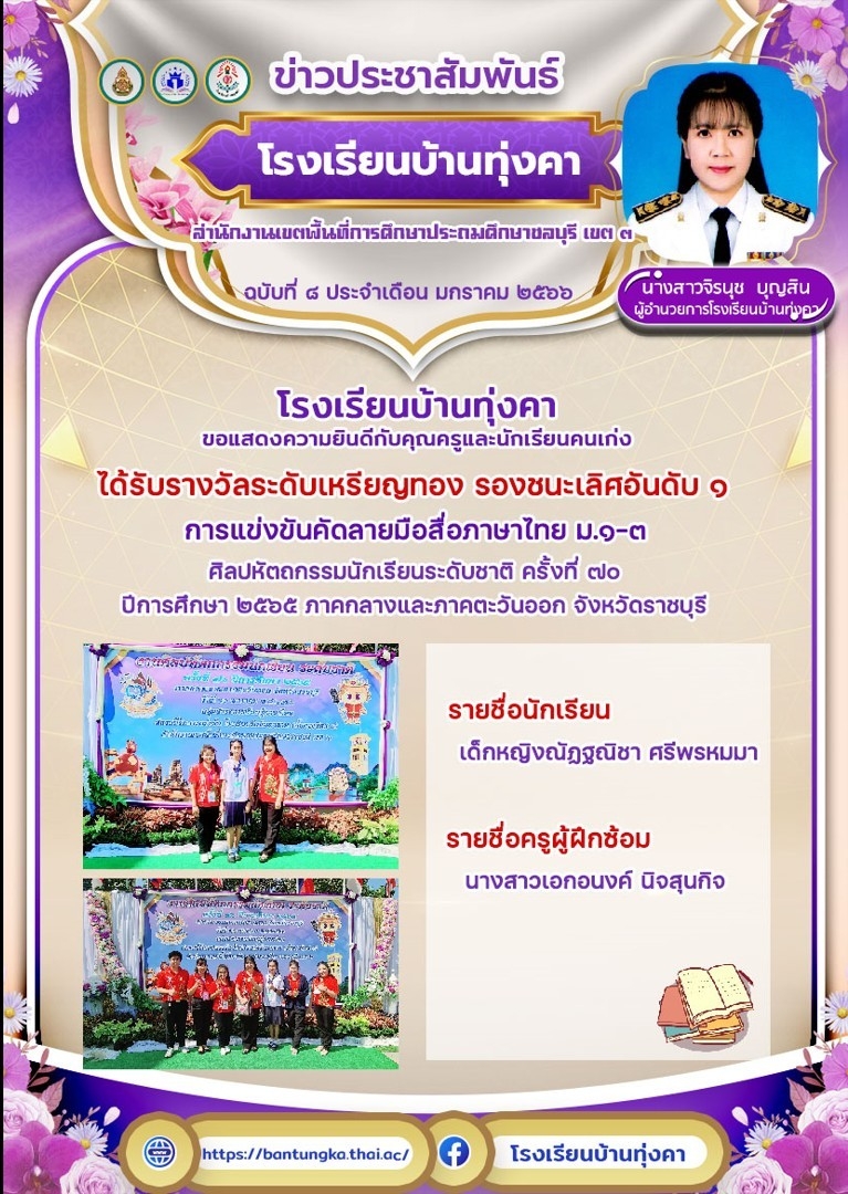 ม.ค.8 รางวัลเหรียญทองระดับภาค รองชนะเลิศอันดับ1 การแข่งขันคัดลายมือ