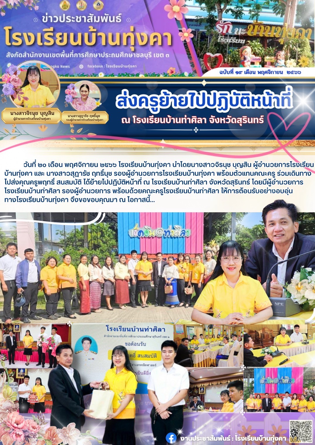 ส่งครูย้ายไปปฏิบัติหน้าที่ ณ โรงเรียนบ้านท่าศิลา จังหวัดสุรินทร์